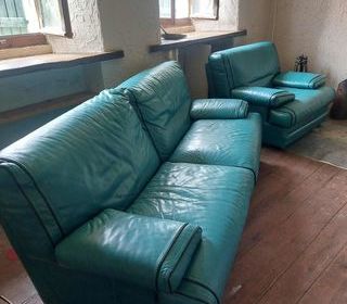 Canapé et son fauteuil - vert en bon état