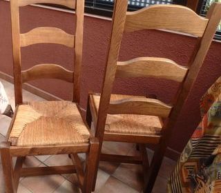 Lot de 2 chaises bois massif paillées Hauteur assise 45 cm hauteur totale 110 cm assise 36,5/43 cm profondeur 40 cm très bon état A chercher à Colmar