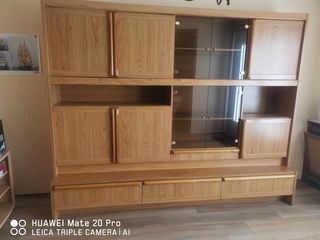 je vends mon living personnel des années 1980 nombreux rangements une vitrine un bar haut 4 portes 2 rangement avec 2 étagères un a une porte au milieu à droite 2tiroirs en b