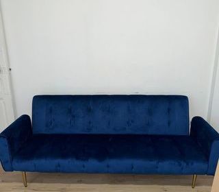 Canapé 3 places bleu, acheté hier à 280€ État : neuf, jamais utilisé. Très confortable et moderne. Prix ferme : 250€ non négociable