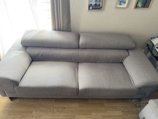 Canapé cuir 3 places Caravel Mobilier de France. Valeur achat 2016 , 2200€. L196 H78 P109. Coloris taupe. Têtières relevables réglables. Larges accoudoirs. Fabrication italienne.