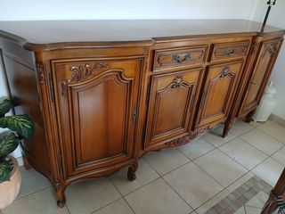 1 bahut 3 portes + 1 petit meuble sur le dessus 1 petit buffet assorti avec également 1 petit meuble sur le dessus 1 table avec rallonge 4 chaises paillées . Le tout en excell