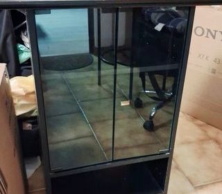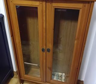 Bibliotheque ou vitrine murale pin teinté avec portes vitrées H : 112 cm L : 70 cm P : 22 cm A retirer sur Ajaccio