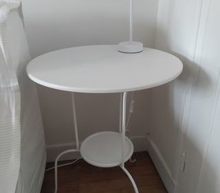 Vends mobiliers Ikea : 1. Table d'appoint blanche 2. Bureau Micke blanc 142x50 avec 2 tiroirs 3. Chaise pivotante Skruvsta blanche 4. Canapé convertible blanc Lycksele Hâvet 2