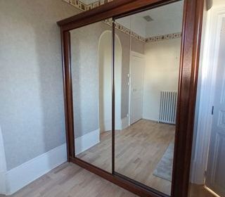 a vendre chambre à coucher armoire porte coulissante lingère et penderie couleur chêne lit 140 x 190 avec ou sans literie très bon état a démonter et enlever sur place