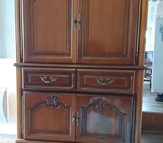 Meuble en merisier massif fabrication française Portes rétractables et amovibles / plateau pivotant / tiroir coulissant avec façade basculante Meuble : Long 110 / Larg 54 / Haut
