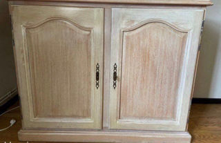 Cave à vin encastrée dans un meuble en chêne cérusé Hauteur 102 cm Longueur 128 cm Largeur 71 cm En parfait état de fonctionnement 2 défauts, voir photos 1 griffe sur la p