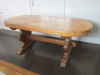 Table basse en chêne massif Longueur : 116 cm Largeur : 48,5 cm Hauteur : 47 cm Epaisseur plateau : 4,5 cm En bon état A venir récupérer sur place Prix : 200 euros
