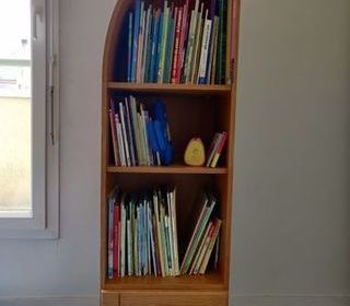 Vends bibliothèque en bois clair : qualité et finitions impeccables. Originale par sa forme, elle est parfaite dans une chambre d'enfant pour ranger les livres. Solide par sa fabri