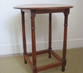 Guéridon en bois Petit guéridon en bois / petite table d'appoint la surface est à poncer hauteur : 47.5 cm diamètre du plateau : 39 cm largeur pied/base : 25.3 cm Prix : 25
