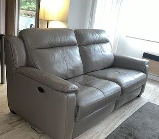 2 canapés de relaxation en cuir couleur taupe en très bon état : 1 canapé 3 places + 1 canapé 2 places