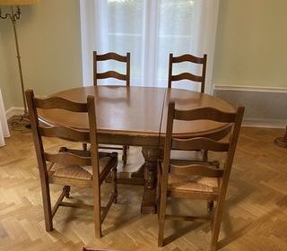 Table en chêne massif plus 4 chaises chêne massif avec assises paille en état impeccable
