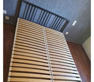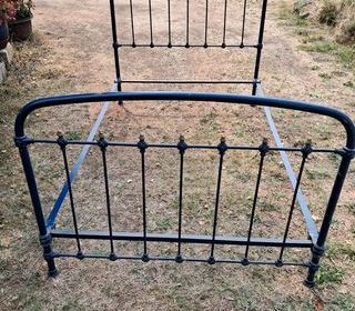 Lit en fer forgé avec des boutons dorés pour sommier et matelas de 1.90m x 1.2m Hauteur avant 1.36m Hauteur arrière 0.95m Hauteur au sol 0.25m Faire offre