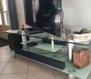 Style bistrot Très bon état Plateau marbre 120 cm x 80 cm Épaisseur 2 cm Hauteur 75 cm Piétement comme neuf, coloris bleu