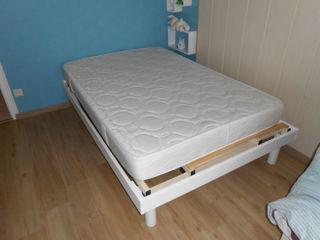 Vent lit: L= 187cm, l= 124cm, H= 32cm, Saumier à lattes réglable en largeur: L= 182cm, larg. déplié= 159cm et plié= 87cm, Matelas: L= 178cm, l= 114cm, H= 15cm, le tout en bon état.