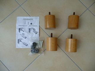 4 pieds de sommier, forme cylindre, en hêtre massif vernis, hauteur 8 cm. A visser directement sur votre sommier. Système de fixation avec adaptateurs et fiche de montage fournis.