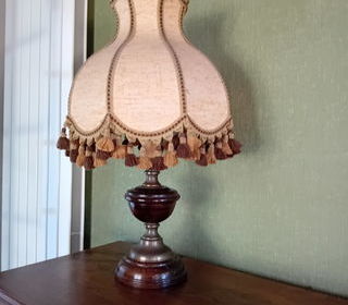 LAMPE A POSER -PIED BOIS et ETAIN-AbAT-JOUR TISSU a prendre sur place à ECHIRE