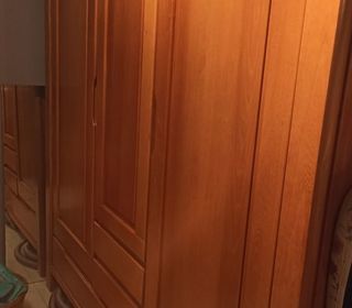 Armoire dressing,Bois massif merisier Portes: 3 Hauteur (cm): 209 Longueur (cm ) 195 Profondeur (cm): 60 Largeur(cm): 135 Bois massif Matériel: Bois massif merisier Penderie ,é
