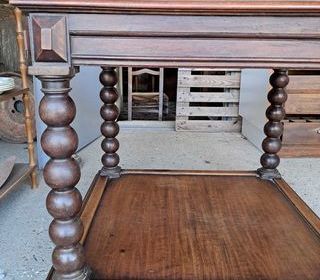 Table ancienne en noyer XIXe à pieds tournés dans son jus d'origine, une légère fente dans le milieu qui a été restaurer, cirage effectué. Au prix de 199€. Visible à mon maga
