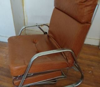 Fauteuil en skai marron Possibilité de le transformer en chaise longue 2 sacoches qui se fixent aux accoudoirs. Voir pour livraison.