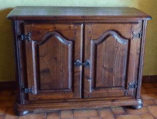 Vends petit meuble d'appoint en bois foncé Pouvant être utilisé comme bar, support pour télévision etc Largeur : 1,00 m ,profondeur : 0,45 m, Hauteur : 0,75 m A prendre sur pla