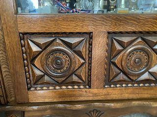 Buffet en bois avec portes sculptées et finitions travaillées.