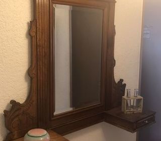 Miroir avec 2 tiroirs ( vide poche) en noyer Henri IV bon état