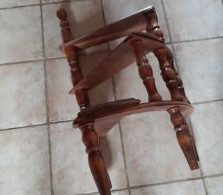 Meuble étagère en forme d'escalier, 90 x 50 x 52, en bois massif.Chaque étagère a une profondeur de 9 cm à gauche et 18 cm à droite,pour une longueur de 48 cm. Parfait état. A reti