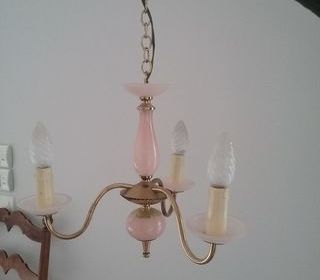 Magnifique lustre opaline rose annees 60 trois branches