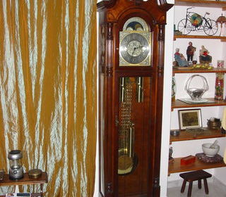 Très belle horloge californienne USA en Chêne Dimensions en m/m hauteur 2008 /largeur en façade 580 / profondeur 350 , en façade et les 2 côtés sont en verre biseauté, 2 luca