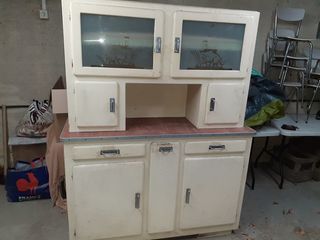 Ce mado est dans assez bon état Une vitre est fendu , un pied est endommagé et les montants arrière central du meuble bas on un début de colonisation qu'il faut traiter rapidemen