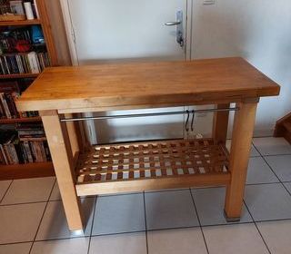 console cuisine en bois avec 1 étagère et barre de suspension crochets en bon état dimensions :hauteur 90.5 cm largeur 53cm longueur 1m20 étagère dim : longueur 99cm largeur 41 c