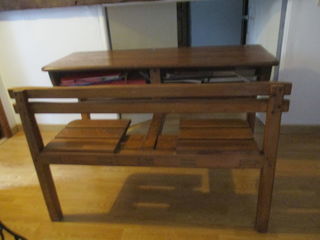 Bureau écolier ancien 2 places avec encriers en verre très bon état à prendre sur place