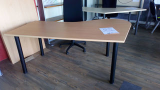 BUREAU HETRE RETOUR DROIT PIEDS ALU 160 X 80 RETOUR 80 X 80 ANGLE 120° HAUTEUR 73 CM TRES BEAU DESIGN