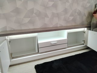 Meuble TV très bon état cause double emploi . Dimensions L1700/P420/H470 . Coloris blanc , plateau nuancé gris,avec éclairage .