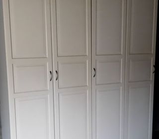 Bonjour, J'ai une grande penderie et 2 colonnes de rangement, pour le linge. - La penderie a une grande étagère en haut et une en bas et la barre porteuse pour les manteaux. Elle