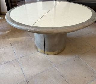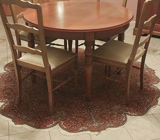 table ronde avec rallonge style Louis Philippe couleur merisier avec 4 chaises H760mm D1080mm rallonge + 440mm