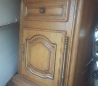 Chambre à coucher grand lit (2mx2m) double sommier. Literies dont drap couette et couverture. Table basse ronde en osier et dessus en verre, Tapis et 2 grand poufs et 2 petit pouf.