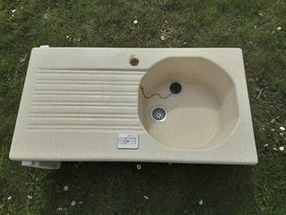 Evier grès beige moucheté Dimensions 92 x49 cm Deux défauts visibles sur les photos