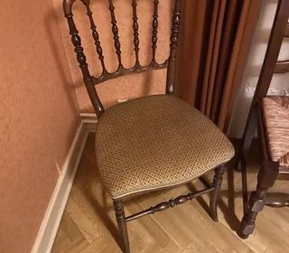 deux chaises Skaï et bois style vintage bon état sauf la bordure de l'une des chaises a recoller