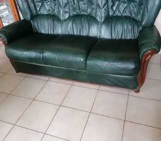 A vendre salon en cuir et bois, 1 canapé 3 places et 2 fauteuils 1 place,