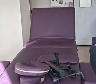 Table de massage ou de soins,ayant très peu servie(cause déménagement).très bon etat. Longueur 1m 97 Largeur 70 cm Hauteur réglable Armature en bois A retirer sur place.