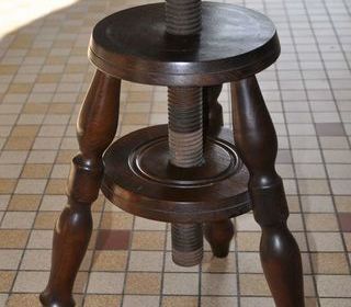 Je cède : - un Tabouret à vis réalisé en bois chêne massif - poids 3,5kg - Ce tabouret est réglable en hauteur grâce à une grosse vis de même bois - confortable, stable et f