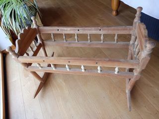 bercelonnette et berceau ancien, déjà décapé , en bon état .également bureau d'écolier , bureau vintage en métal , vestiaire en fer forgé, fauteuil et canapé ancien, façade de plac