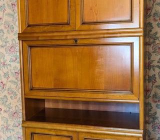 Vends meubles merisier massif : Vends meuble bar en merisier composé d'un meuble bas avec un rayon, un meuble bar avec une etagere en verre et un miroir, un meuble haut avec un