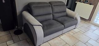 Canapé microfibre 3 places. 2 relax électriques, 2 têtières réglables. Très confortable et facile d'entretien. Voir dimensions dans les photos. Acheté 1800 euros à la Meubleri