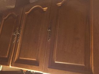 UN BLOC D ÉLÉMENTS HAUT DE CUISINE BOIS : UN ÉLÉMENT UNE PORTE ET UN DEUX PORTES MESURES : 1.20 DE LONG 34.5 DE LARGE ET 70 DE HAUTEUR UN ÉLÉMENT 2 PORTES : 0.80 Longeur 0.34