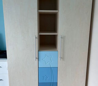 Bonjour, je vends cette chambre de marque Sauthon pour garçon en bon état général. Cela comprend une armoire avec 3 tiroirs, une commode et un lit avec tiroir. Prix : 150€. Le tout