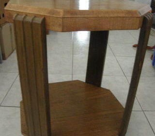 table exagonale année 1920/1930 dimension 55cm, 63cm de haut 2 couleurs de bois