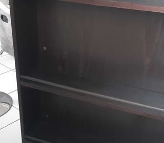 Bar avec façade métal Intérieur 3 rayonnages H: 111 cm Long : 100 vm Larg : 45 cm 2 sièges réglables Pied métal, siege plastique Haut : 87 cm A venir retirer sur place